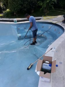 Pulite il fondo e le pareti con uno sgrassate o in caso di presenza di sedimenti di calcare con un disincrostante Le pulizie del rivestimento vanno eseguite quando c’è poca luce solare e calore non eccessivo, perché le superfici devono mantenersi umide.
