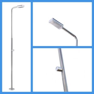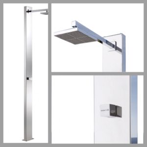 in acciaio, le docce AstralPool si integrano in maniera armoniosa