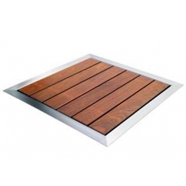 Piatto doccia misto legno tropicale Inox AISI 316 satinato a completamento della doccia AstralPool Pluvium.