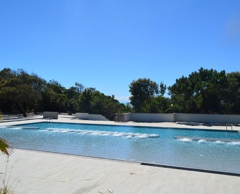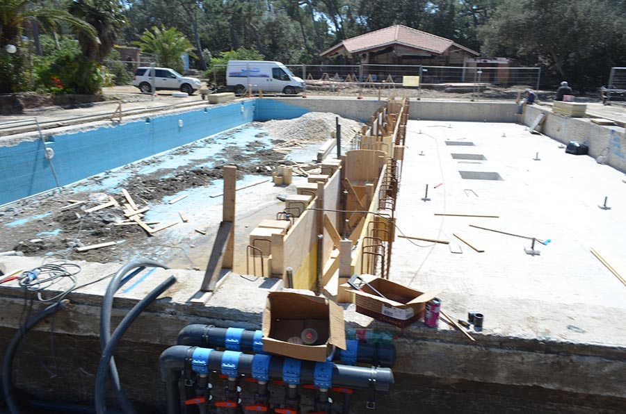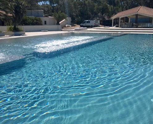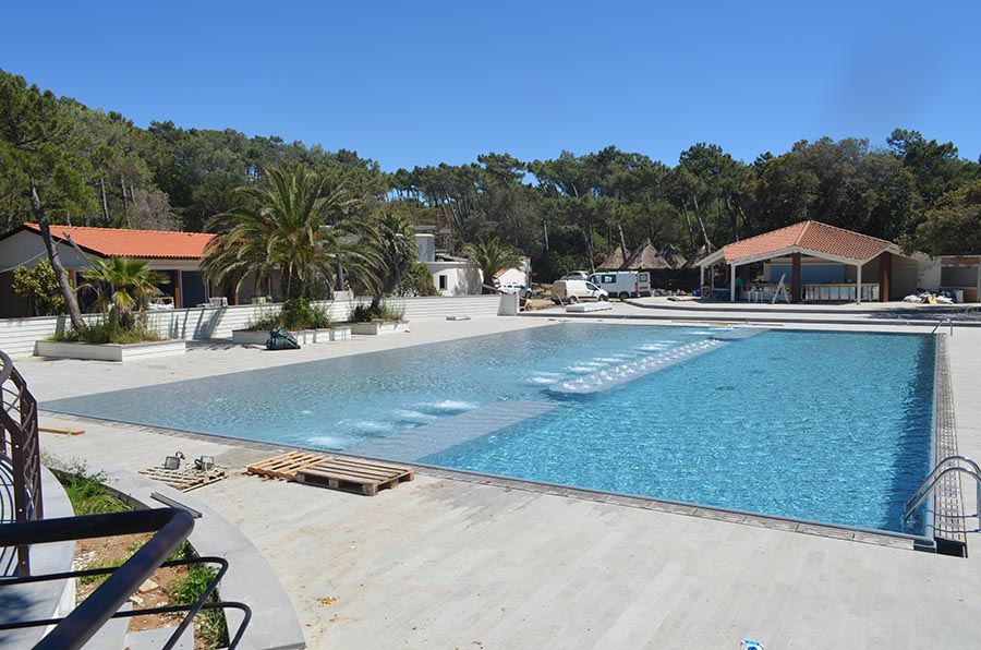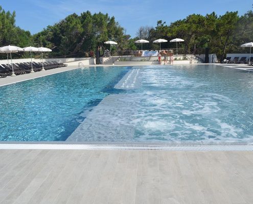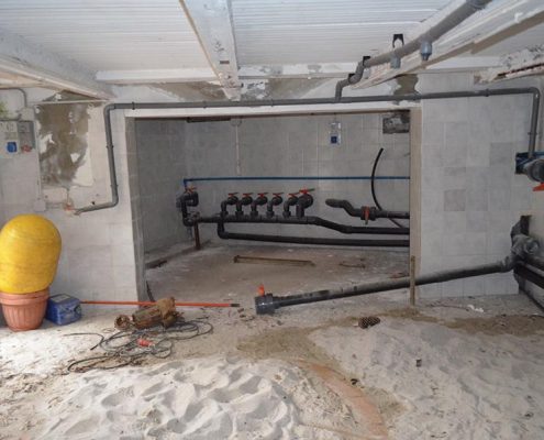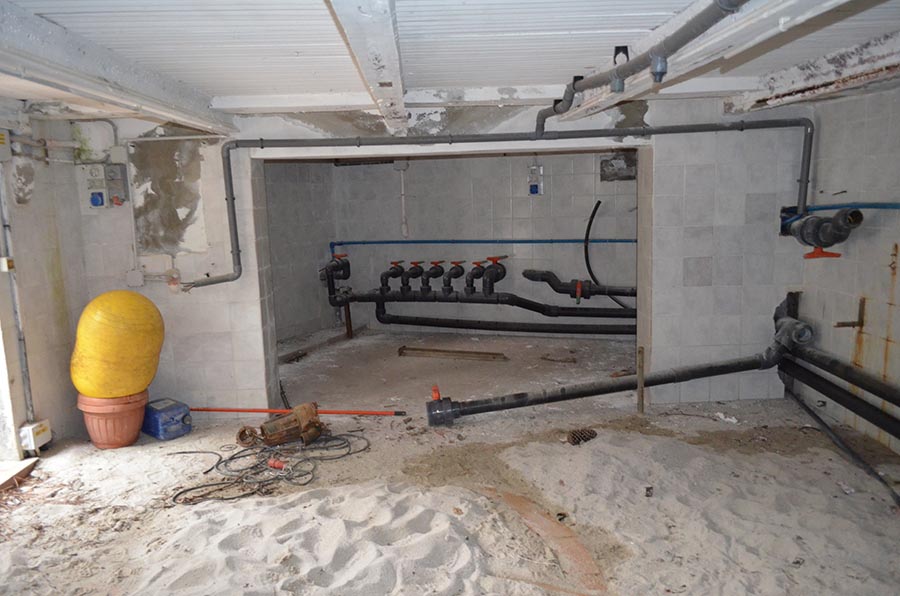 Riportare le strutture a nuovo splendore avrebbe richiesto tempo e ingegno, ma non ci siamo persi d’animo e abbiamo studiato diverse soluzioni progettuali perché il nostro cliente potesse scegliere quella più in linea con il budget da investire e le sue aspettative. Dovevamo riportare gli impianti a norma, ristrutturare la piscina perché fosse in regola e sicura per le persone che l’avrebbero usata, riprogettare la vasca ed i vani tecnici. Il tutto senza apportare modifiche all’esistente, perché il villaggio si trova in una pineta in riva al mare ed è sottoposto a vincolo idrogeologico e paesaggistico.