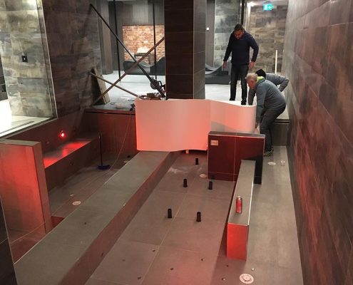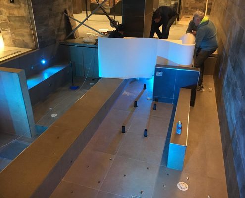 Si trattava di un lavoro delicato e di precisione perché le soluzioni individuate dal progettista erano innovative e ricercate, ma abbiamo completato l’area relax in 6 mesi.