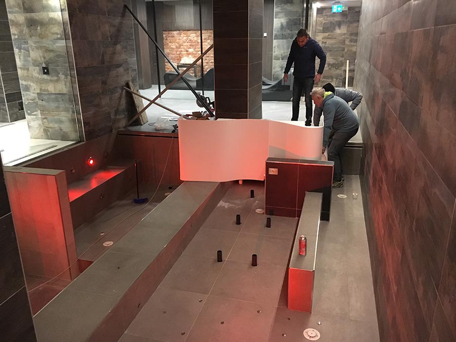 Nel 2016, la proprietaria del Korè Wellness, un centro sportivo vicino a Salerno, ci ha contattato per realizzare un’area relax con un salotto d’acqua ed una piscina interna per l’attività sportiva e la fisioterapia per i suoi clienti. Insieme al progettista incaricato dalla nostra cliente, l’Architetto Massimo Giordano, abbiamo studiato le soluzioni possibili, dando il nostro parere tecnico e pratico alle sue idee. Ecco le foto del centro durante i lavori: